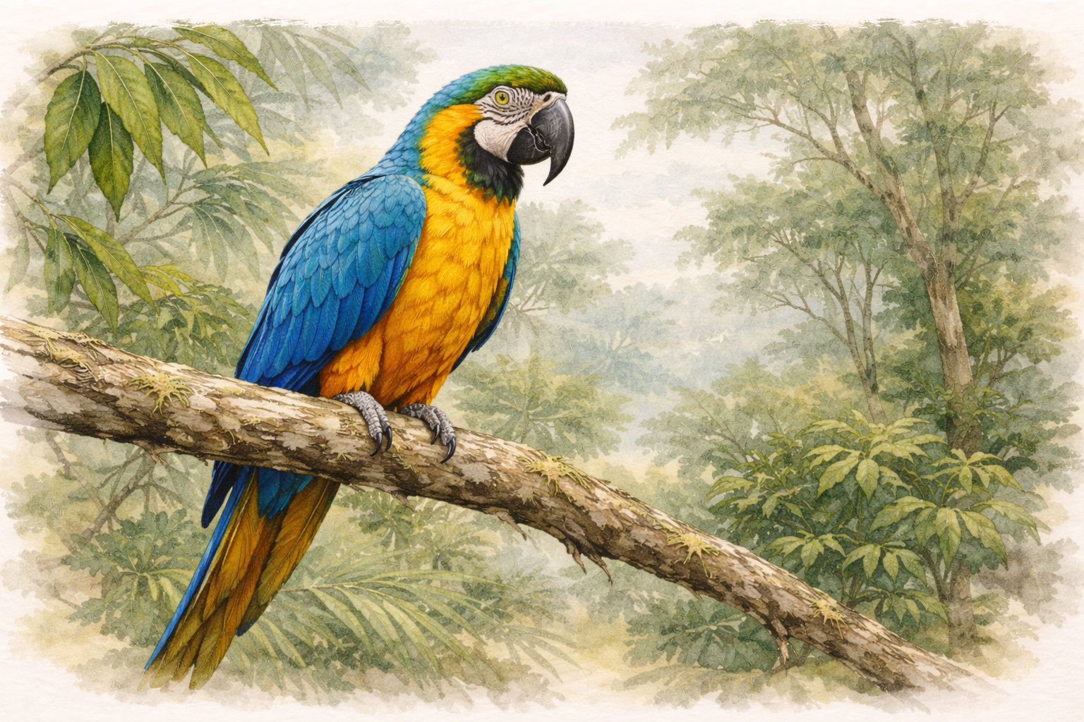 Blågul ara kommer ursprungligen från Sydamerika, där den lever i tropiska regnskogar, savanner och områden nära floder.