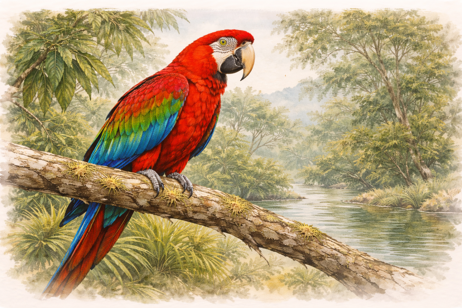 Den grönvingade aran är en av de största papegojorna i världen. Den har en röd kropp, gröna vingpartier och blå vingpennor. Med sitt kraftfulla utseende och sina starka färger är den en imponerande fågel som också är mycket social och intelligent.