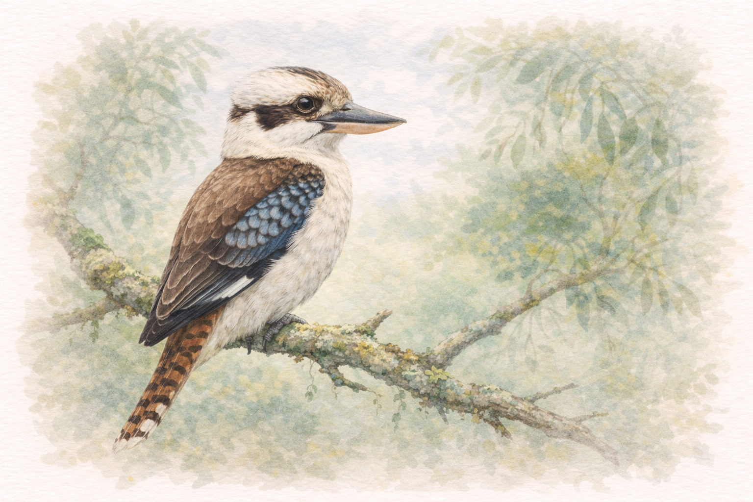 Kookaburran är en stor kungsfiskare som är känd för sitt speciella läte som låter som högt skratt. Fågeln kommer ursprungligen från Australien och är en av landets mest kända arter. Med sitt kraftiga huvud och sin starka näbb är kookaburran en skicklig jägare.