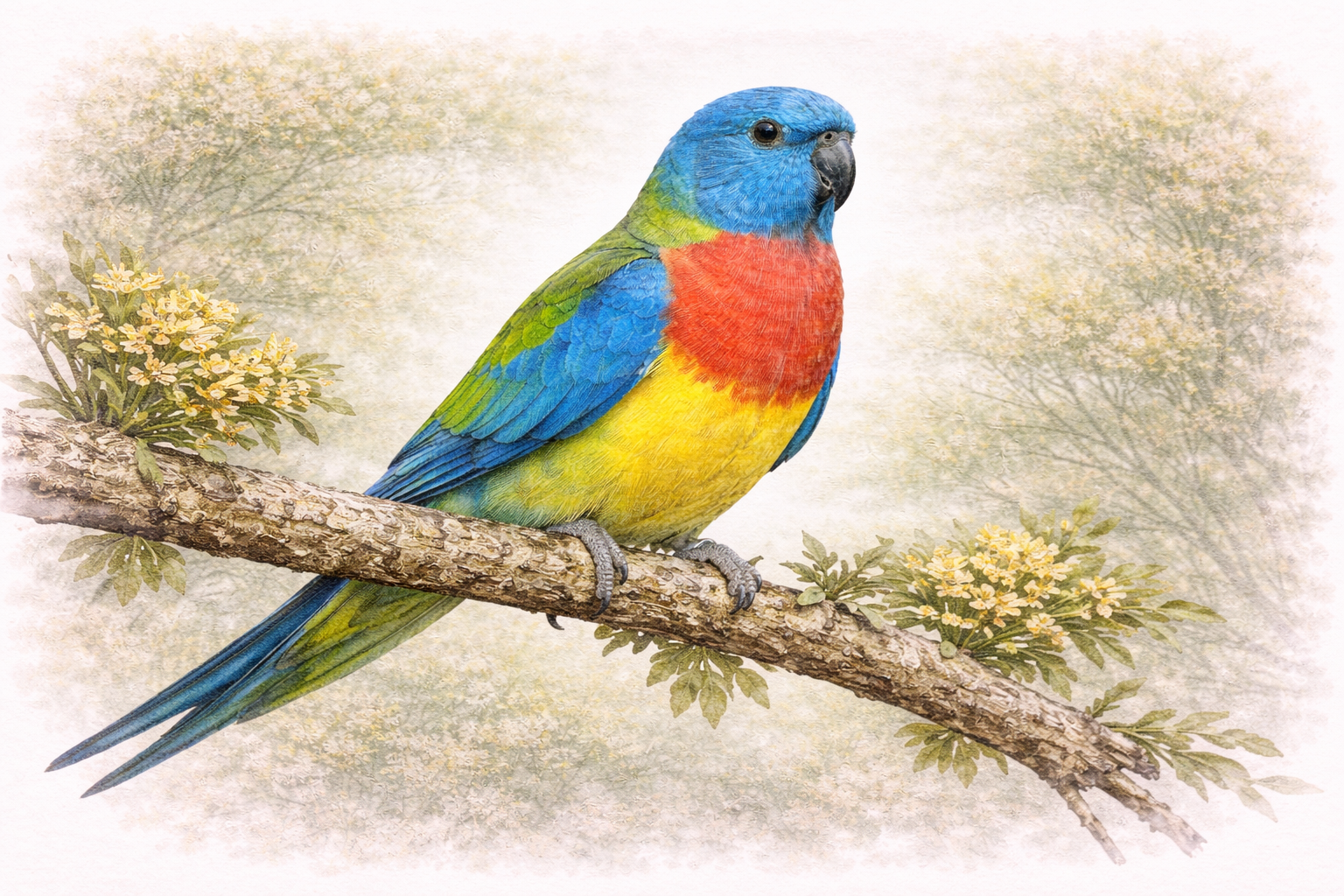 Splendidparakiten kommer ursprungligen från Australien, där den lever i torra och öppna landskap som savanner, buskmarker och gräsområden.